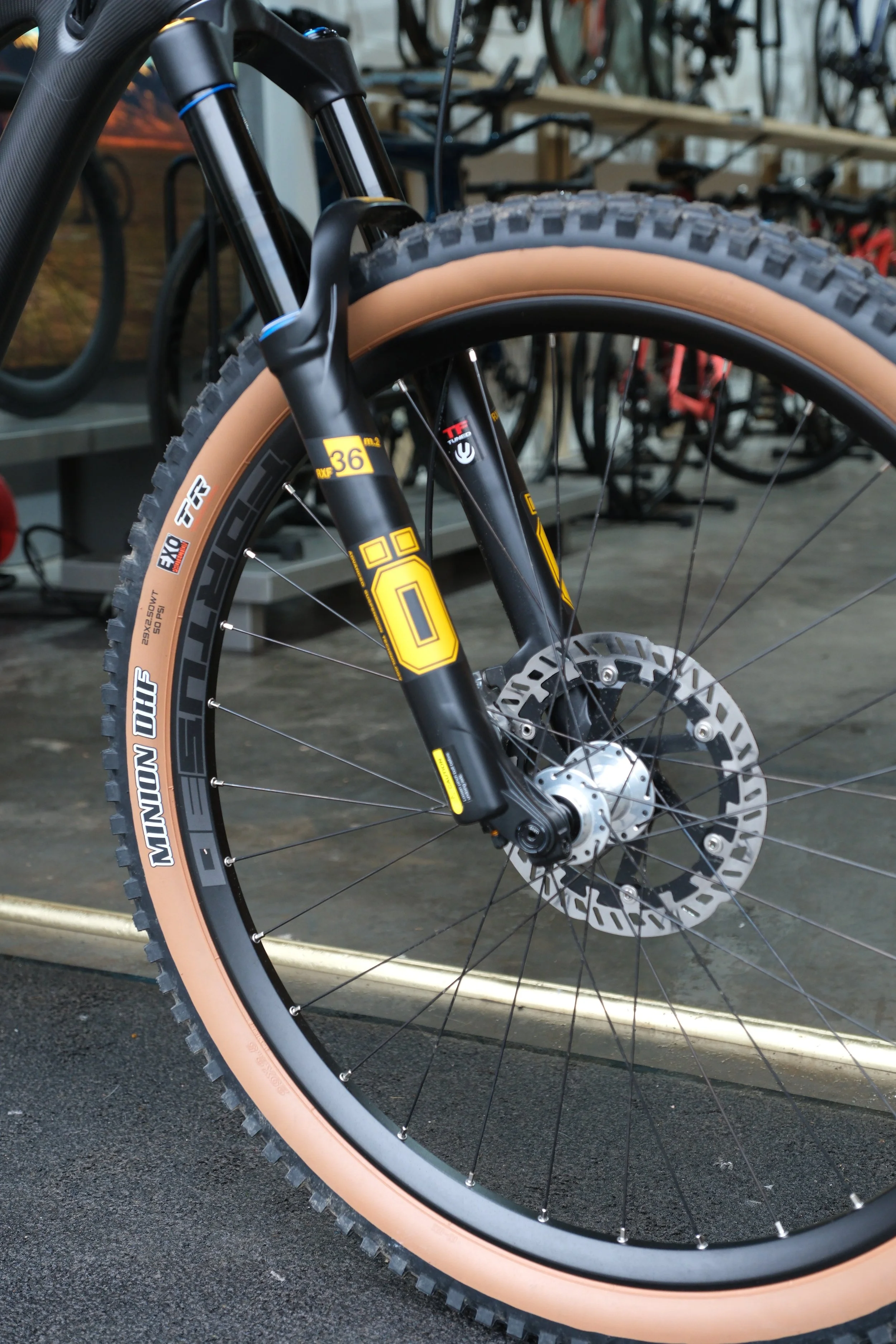 Full carbon front triangle. Machined aluminum rear. 140mm front and 130mm rear travel.